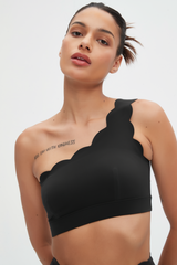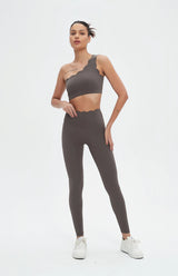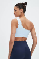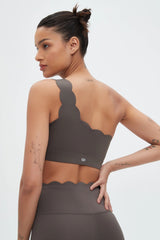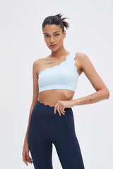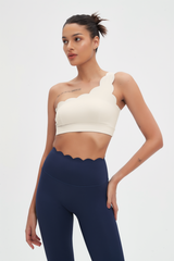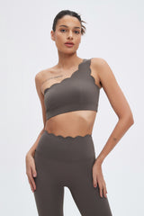The Helena Scallop One Shoulder Sports Bra combines elegance with athletic functionality, making a statement both in the gym and on the town. Inspired by the timeless beauty of the scallop shell, its one-shoulder design merges aesthetics with practicality.