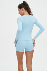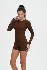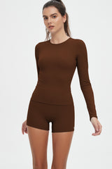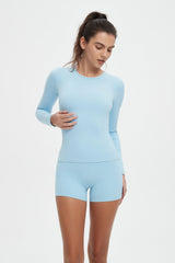 Top: Abigail Buttery Soft Crew Neck Long Sleeve Active Top.