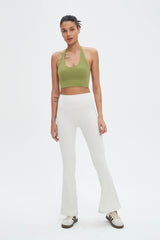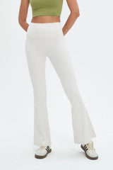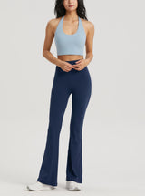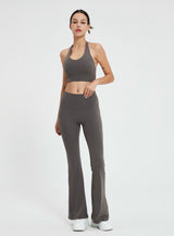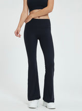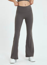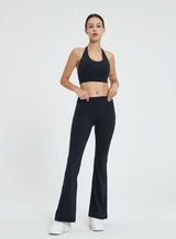• Flared bottoms offer a nod to classic yoga aesthetics.