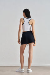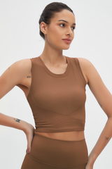 - Fit: Slim, cropped design with built-in molded cups
