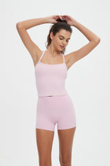 Top: Vesper Halter Neck Strap Back Sports Bra Active Top.